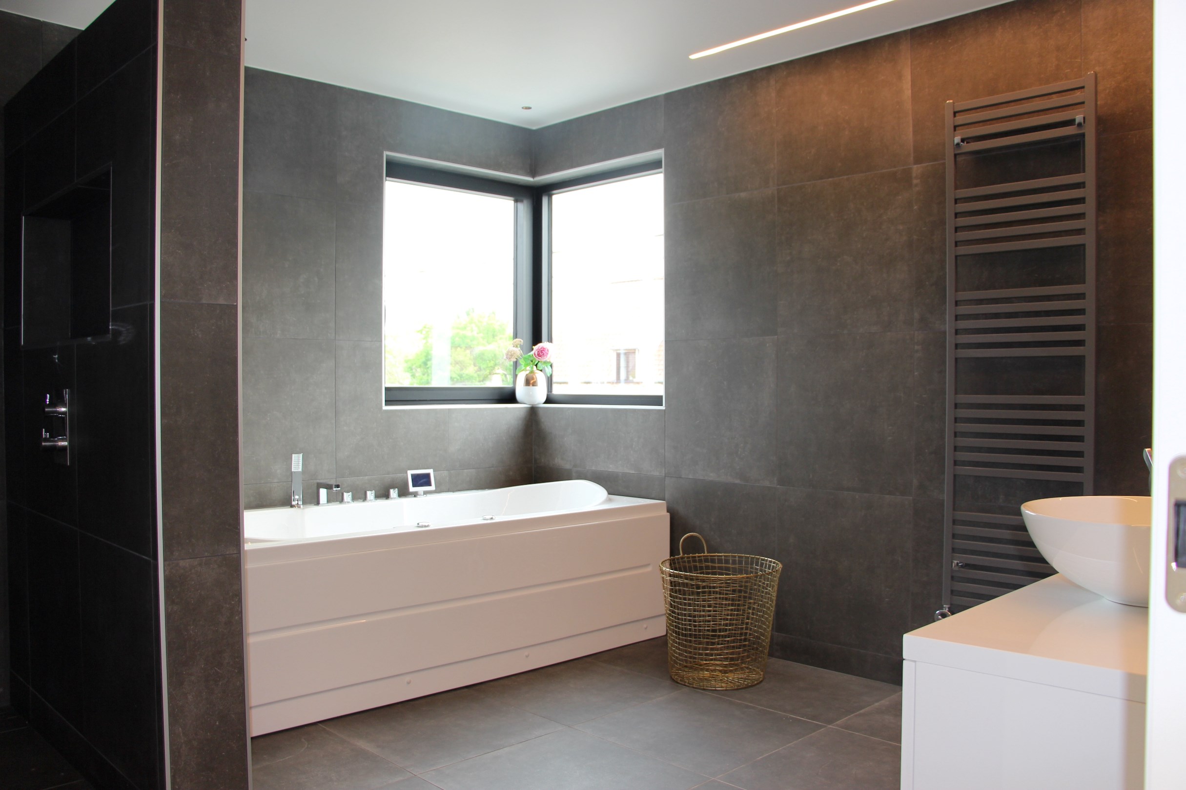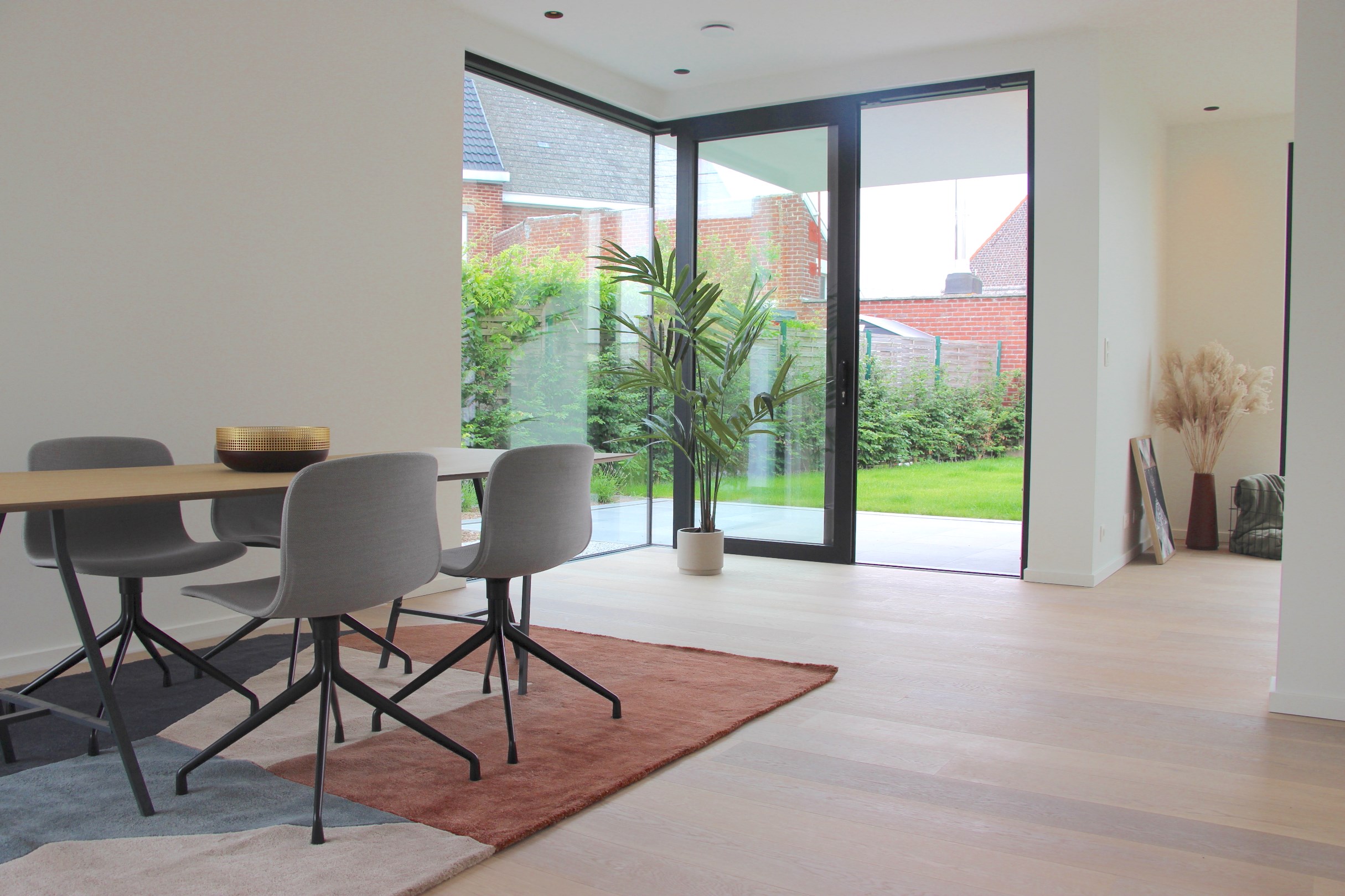 Wij presenteren met trots deze prachtige halfopen nieuwbouwwoning met volledig aangelegde tuin en terras. Via de inkomhal met gastentoilet, komt u in de open en lichtrijke leefruimte met parket terecht. De gezellige woonkamer en eetruimte geven zicht op de tuin. De geïnstalleerde keuken is open maar zorgt, door een slimme verhoging, dat alles netjes verborgen zit. Verder vindt u hier de praktische berg- en wasruimte. Vervolgens nemen we u mee naar de 1ste verdieping waar de LED-verlichting u naar de kamers leidt. De vide in de trappenhal (voleiken treden) zorgt hier voor een zee aan licht! Er zijn maar liefst 4 slaapkamers, een afzonderlijk toilet en een technische berging. De badkamer zorgt voor een inloopdouche met inbouwnis; handig voor de douchespullen(!), een dubbel lavabomeubel en een jacuzzibad waarin het zalig genieten is (met touchscreen, verlichting en muziek). Zowel het glvl als het 1ste verdiep beschikt over vloerverwarming. Tevens zijn er 15 zonnepanelen, autostaanplaatsen en een slimme afgescheiden plaats voor fietsen en vuilbakken aanwezig. Ideaal gelegen dichtbij het centrum, winkels en openbaar vervoer. Domicilie verplicht, niet bemeubeld. Benieuwd naar meer? Contacteer Jolien op 0472479111 of mail naar jolien@tenhuizevastgoed.be en plan uw bezoek in.