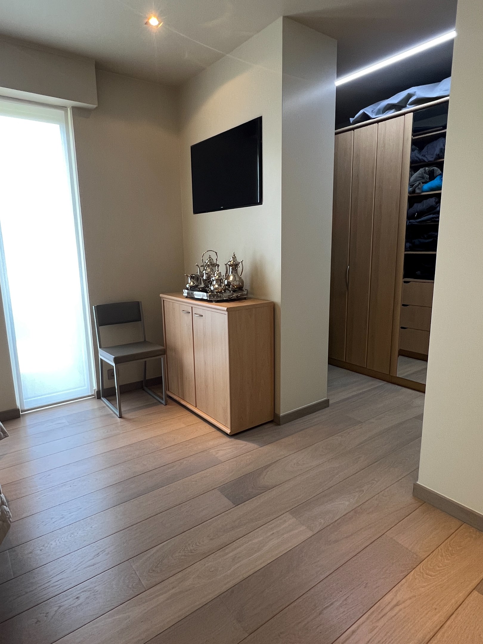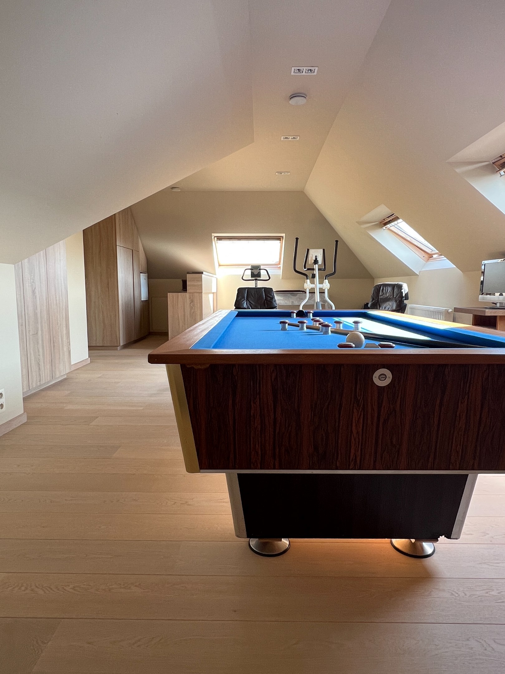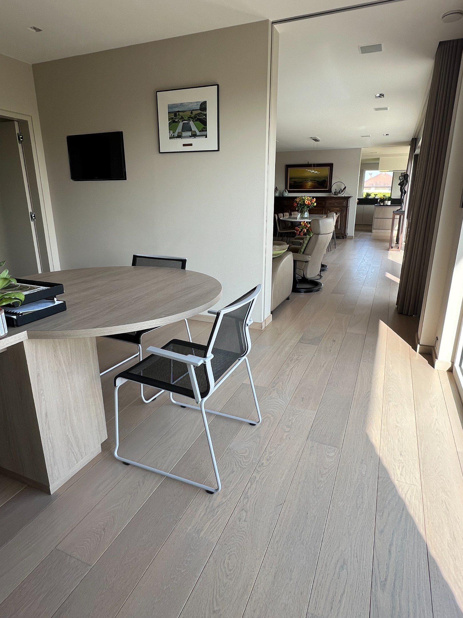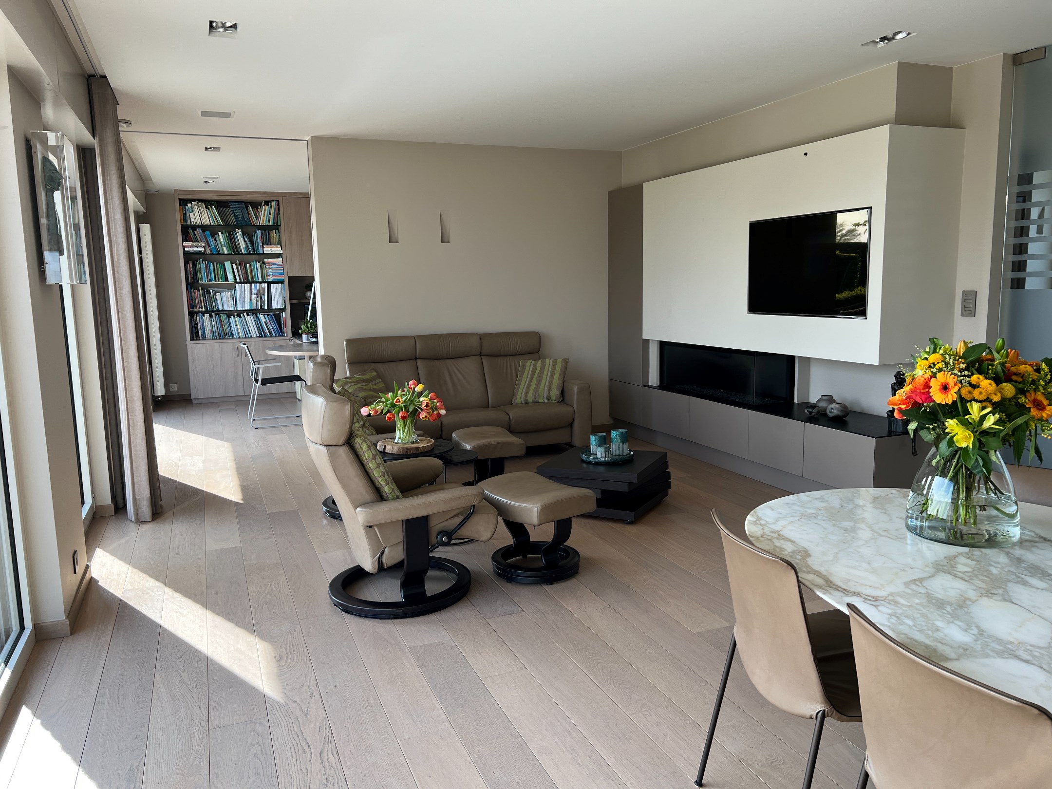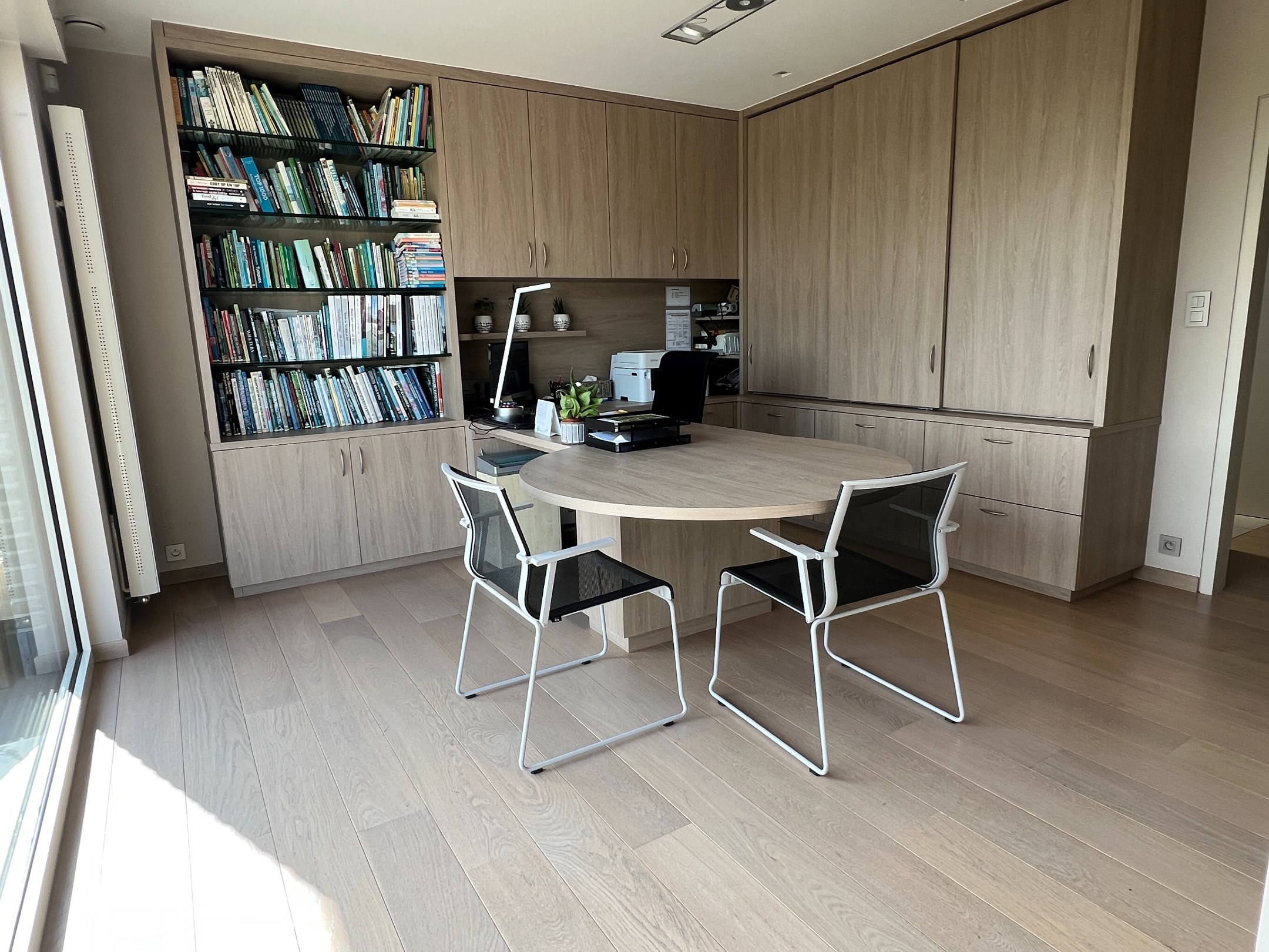 Zowel via de woonkamer als de inkomhal heeft u toegang tot een multifunctioneel bureau, ideaal voor een home office. Dit kan ook eenvoudig worden omgevormd tot speelruimte of een aparte tv-kamer.