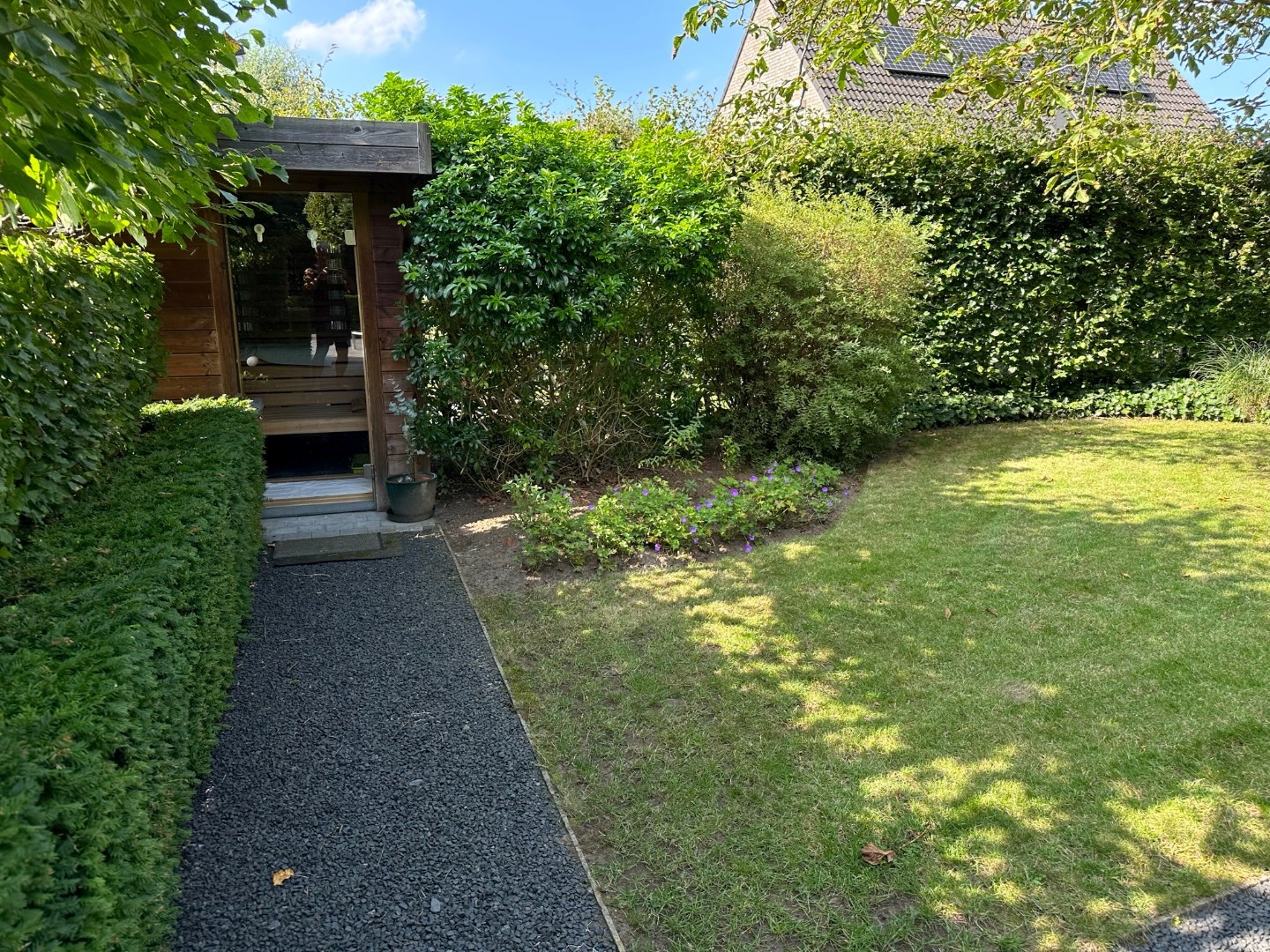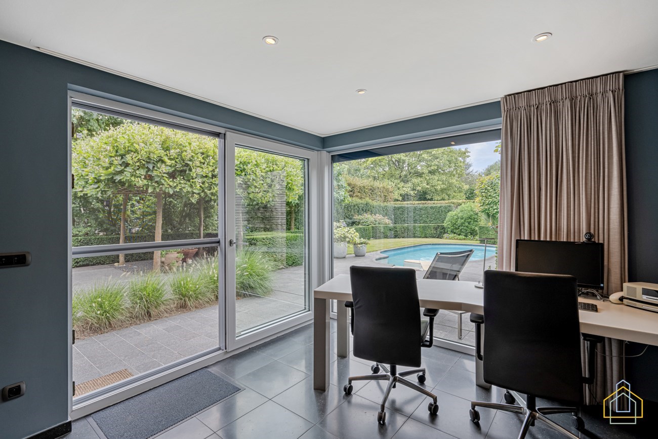 Aansluitend bevindt zich hier een op maat gemaakte bureauhoek waarbij elke vierkante meter nuttig is benut. Met alweer uitzicht op de tuin is het hier rustig (tele)werken.